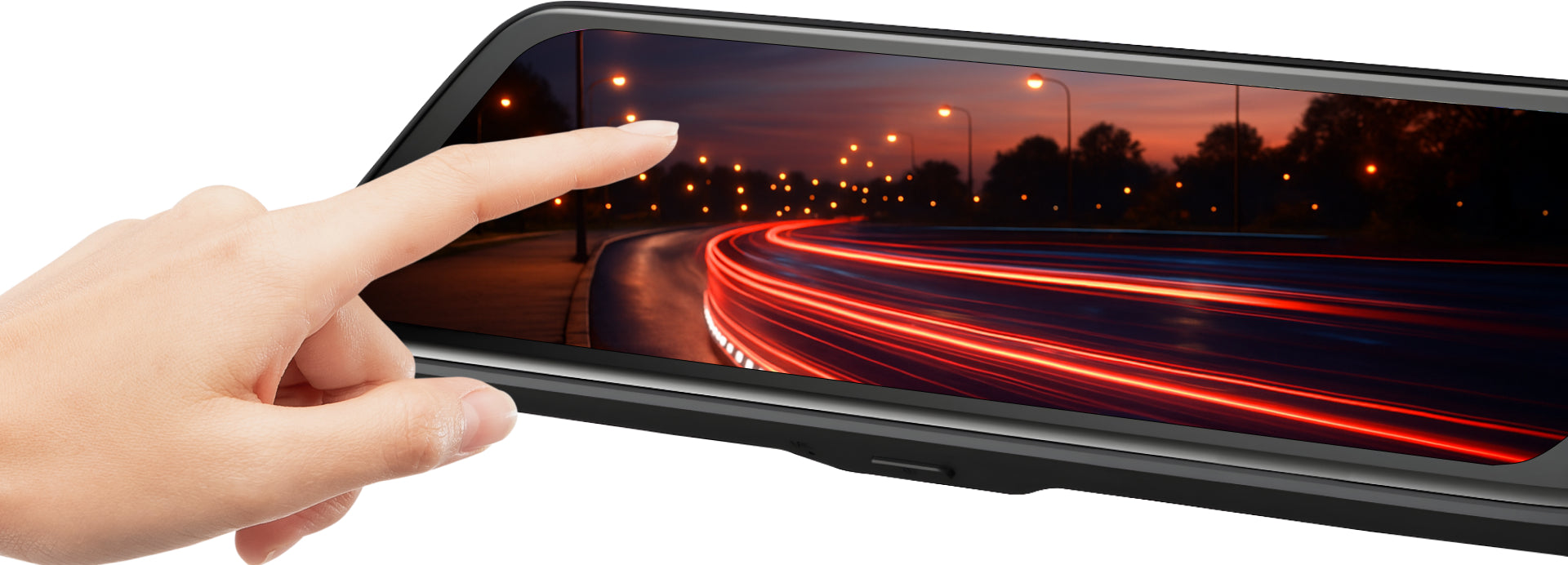The built-in 10-inch LCD touchscreen transforms your view in an instant. Use it as a natural mirror or switch to a vivid display to review footage, change settings, or see more of the road behind you with a single tap.