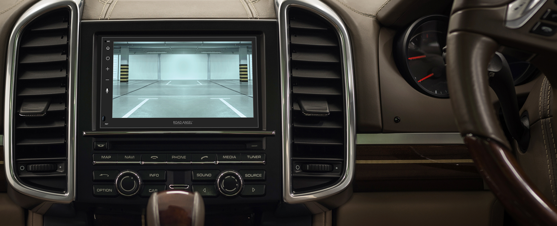 Reversing camera connectivity to aid with parking. Road Angel Reversing Cameras sold separately.